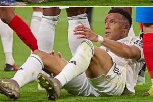 体育资讯04月11日讯 西甲第31轮,皇马主场1-1战平赫罗纳,姆巴佩禁区内倒地未获点引发争议。据西班牙六台分享的照片,姆巴佩遭对手肘击后眼角流血。
