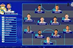 赛前皇马仍旧提前公布了本场比赛的首发阵容,皇马TV官方给出的首发阵型为442,维尼修斯和姆巴佩搭档锋线,布拉欣·迪亚斯分别出任两个边前卫,巴尔韦德和贝林厄姆搭档后腰。左边后卫上,皇马本场选择门迪首发。